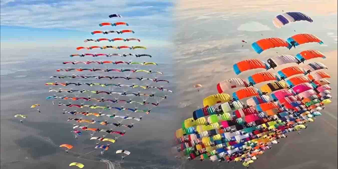 104 اسکائی ڈائیورز ورلڈ ریکارڈ: آسمان پر انسانیت کا سب سے خوبصورت پھول