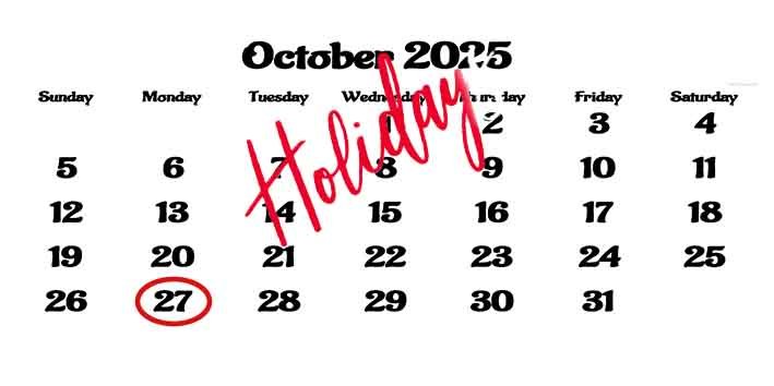 وفاقی حکومت نے 2025ء کے لیے جاری کردہ سرکاری و اختیاری تعطیلات کی فہرست میں واضح طور پر بتایا ہے کہ 27 اکتوبر عام تعطیل نہیں ہوگی۔