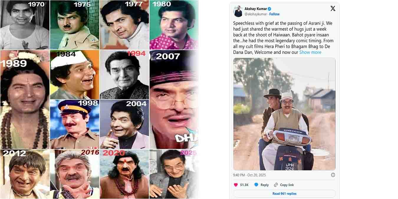 بھارتی فلم انڈسٹری کے سینئر اداکار اور بے مثال کامیڈین گوردھن اسرانی کی موت پر بالی ووڈ سوگوار ہے۔ ان کی اچانک رخصتی نے فنکاروں، مداحوں اور فلمی دنیا سے جڑے ہر فرد کو دکھی کر دیا ہے۔ معروف اداکار اکشے کمار نے اس خبر پر اپنے شدید غم کا اظہار کیا ہے۔