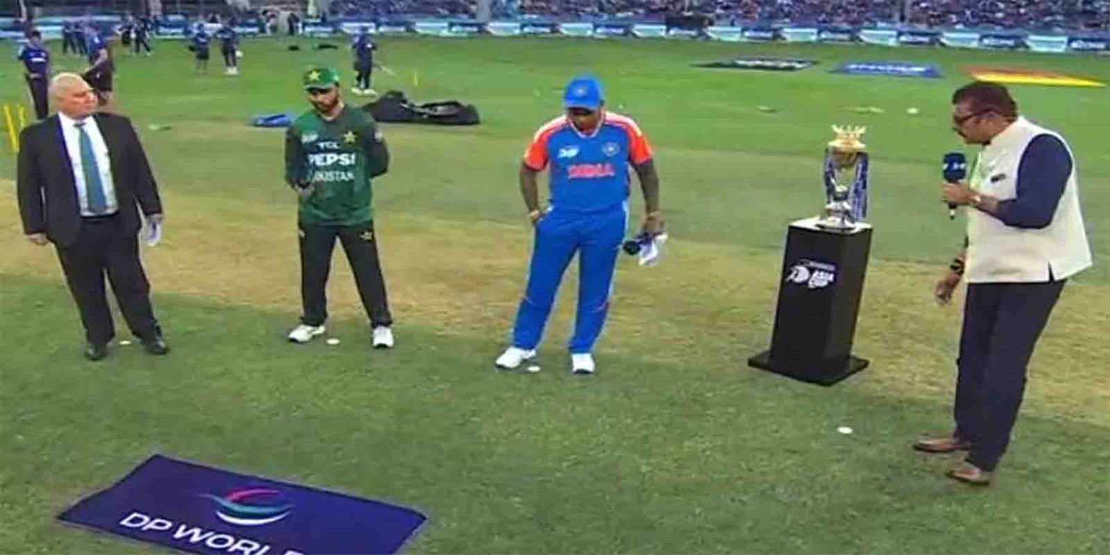 ایشیا کپ 2025 میں پاکستان بمقابلہ بھارت ٹاس کے بعد کھلاڑیوں کا ایکشن