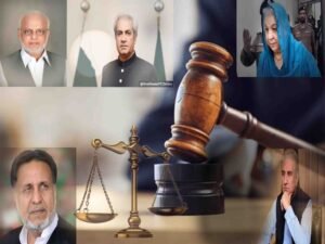 نو مئی مقدمات میں سزائیں اور شاہ محمود قریشی کی بریت لاہور کی انسداد دہشتگردی عدالت نے 9 مئی 2023 کے جلاؤ گھیراؤ کیس میں پی ٹی آئی رہنماؤں یاسمین راشد، میاں محمود الرشید، اعجاز چوہدری، اور عمر سرفراز چیمہ کو 10، 10 سال قید کی سزا سنائی، جبکہ شاہ