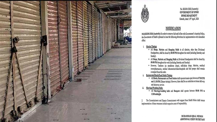 حکومت سندھ کی جانب سے جاری نوٹیفکیشن کے مطابق حکومت سندھ نے مارکیٹس، ہوٹلز اور شادی ہالز کے نئے اوقات کار نافذ کر دیے ہیں۔